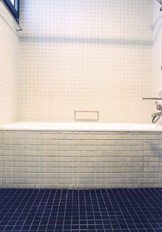 Feinsteinzeug unglasiert Villeroy & Boch, PA Serie 10 x 10, WC Anlagen gewerblich, 5 x 5 Mietwohnungen, Sanitärräume und WC-Anlagen, gesamtes Projekt im Fugenschnitt, keine Fliesen geschnitten.
