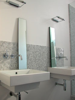 1 x 1 Marmormosaik handgeklebt, unregelmäßiger Halbverband
