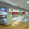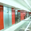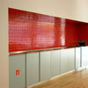 Wand: Feinsteinzeug glasiert rot, Boden: Feinsteinzeug 30 x 60